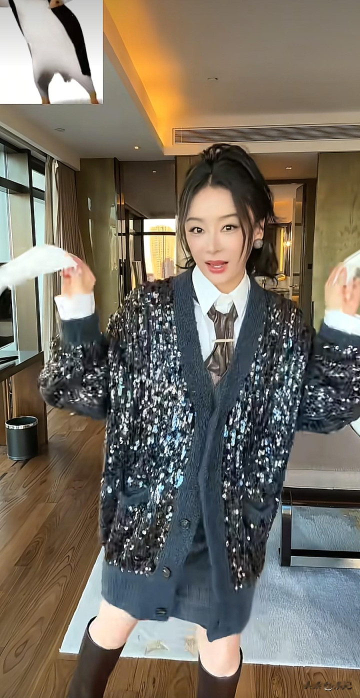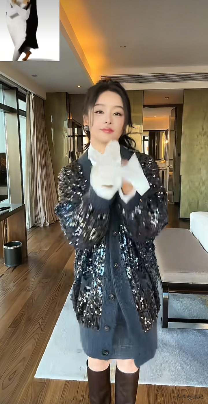 38岁袁姗姗跳舞穿搭: 针织开衫+衬衫+长筒靴, 减龄又洋气, 像28岁