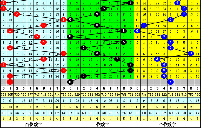从上表可以看出,组选号码124开出之后,出现次数最多的三个号码分别为:960,本期防这三码中落号;出现次数最少的三个号码分别为:825,本期预计这三个号码不会同时出现,本期杀一码:8。