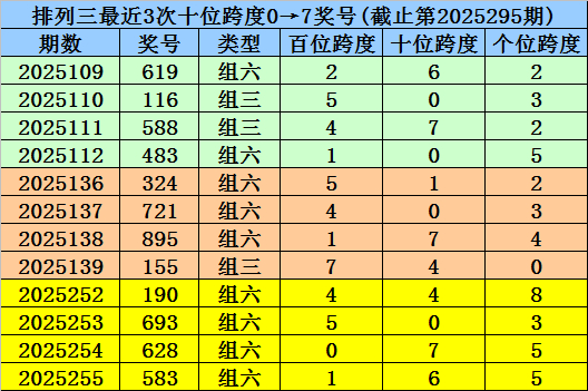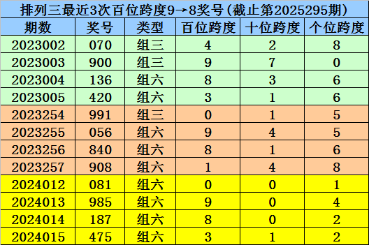 296期杨波排列三预测奖号:跨度分析