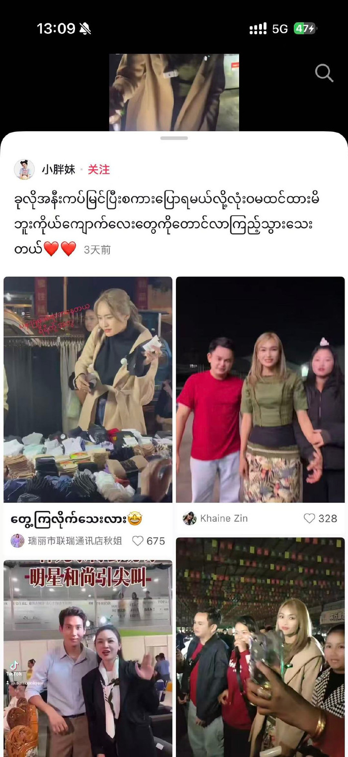 缅甸粉丝在社媒账号发布在云南见到SeinPhyo与Yi的视频