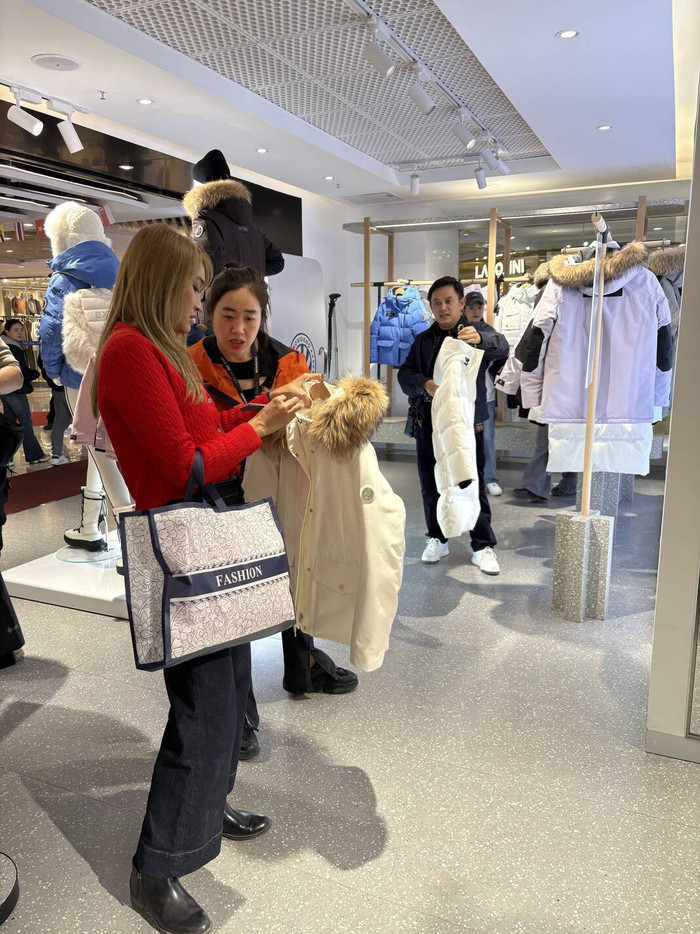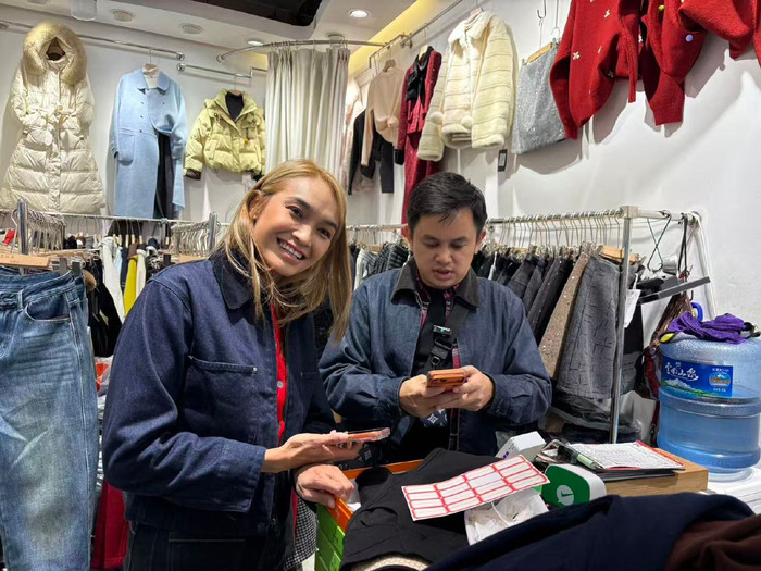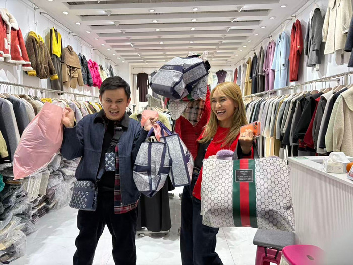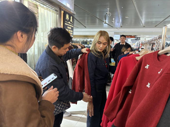 一走进琳琅满目的服装区,Yi的眼睛立刻亮了起来。“这件傣风改良上衣好精致!”“这套针织套装摸起来好舒服!”她穿梭在各色店铺间,不时拿起衣服在镜前比试,很快手中就提了好几个购物袋。“这里的衣服款式新、质量好,关键是价格太亲民了!”她兴奋地分享着购物心得,“我要多买些带回缅甸,朋友们一定很喜欢。”