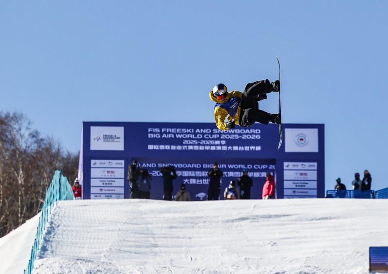 11月29日,中国选手苏翊鸣在单板滑雪男子大跳台决赛中。